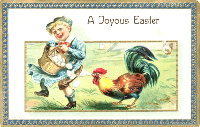 "A Joyous Easter" Turkey & Boy Raphael Tuck Embossed Postcard