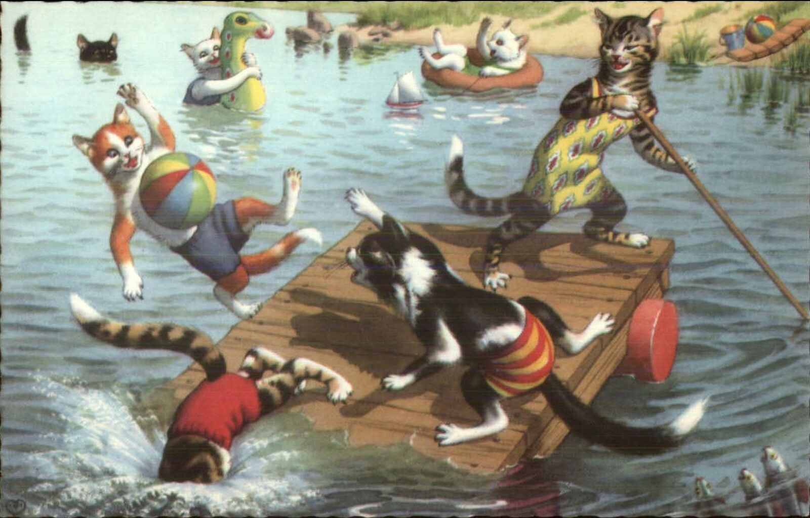 A Mainzer Dressed Cat Fantasy Postcard SWIMMING DOCK #4870
