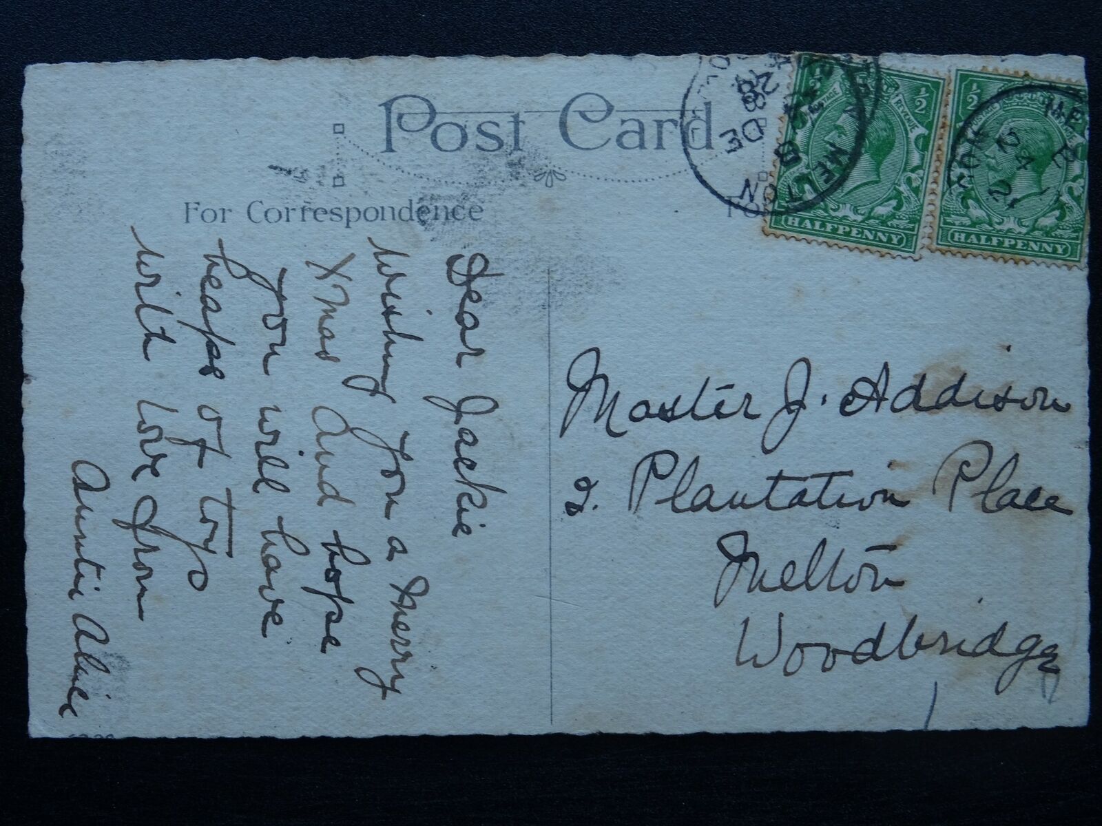 A Merry Christmas A PIG WITH HOLLY & FOUR LEAF CLOVER c1928 Postcard A Merry Christmas A PIG WITH HOLLY & FOUR LEAF CLOVER c1928 Postcard Postcard Details Additional Information - Postcard Condition (VG) - Very Good / Postally used - Postcard Details - Please see detail on the photographic image or contact us for details. Abbreviations: (UB) Undivided Back / (RP) Real Photograph Postcard / (PM) Postmark Interest / (CDS) Cancellation Date Stamp / (SQC) Squared Circle / (DP) Duplex PostmarkPTP Reference - 260819 Postcards WelcomeWelcome to our store. At Past Time Postcards we stock a comprehensive range of British antique and vintage topographical postcards, cigarette cards, rare antique prints and other antique collectables.We aim to make your shopping experience enjoyable and stress free. We list our postcards topographically and by subject matter to make it easier for you to locate the items that interest you. Feel free to browse and explore at your leisure, however if you require assistance locating items or have a specific request please don't hesitate to contact us.Combined Postage We will always combine postage when you purchase multiple items. Please make your multiple purchases by using your Hip BASKET where postage will be combined automatically.Postage & PackagingPostage rates are calculated to include postage and packaging. All Full Sets of Cigarette or Trade Cards are posted 1st Class and protected with a plastic sleeves in a BOARD BACKED ENVELOPE & FULL SET HAVE ADDED STIFFNER BOARD for added security and protection. Payment MethodsOur preferred method of payment is through PayPal for all purchases.UK CUSTOMERS can make payment by PayPal, Personal Cheque or Postal Order. PLEASE NOTE: Credit cards included in PayPal payment method Inc. Visa, MasterCard, American Express, Discover. FOR CUSTOMERS OUTSIDE THE UK: we can only accept PayPal as method of payment100% SatisfactionIf in the unlikely event you are unhappy with your item you have purchased on the basis that the postcard was incorrectly described or graded we do offer a complete refund less the cost of postage and packaging once the item is returned to us.Condition & Grading Information(M) Mint – Like new, almost perfect(EX) Excellent – No obvious flaws, sharp corners, clean and if postally used the writing does not detract from appearance.(VG) Very Good - Minor defects such as album marks, signs of age and handling is acceptable that do not detract from appearance.(G) Good – Noticeable defects, handling and wear apparent. Minor creasing or minor postal damage not detrimental to image.(F) Fair – Obvious creasing, staining, small tears or damp damage evident. Significant edge or corner damage.(P) Poor – Incomplete or image seriously affectedFinally if you have any specific requests or questions we are always very pleased to offer support and assist you with your collecting needs.Kind regardsMark - Past Time Postcards Listing and template services provided by inkFrog
