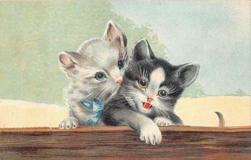 A PAIR OF CATS EMBOSSED POSTCARD (c. 1910) ****