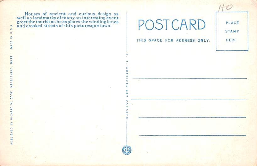 A Quiant Old Street Marblehead, Massachusetts MA Postcard - Unused