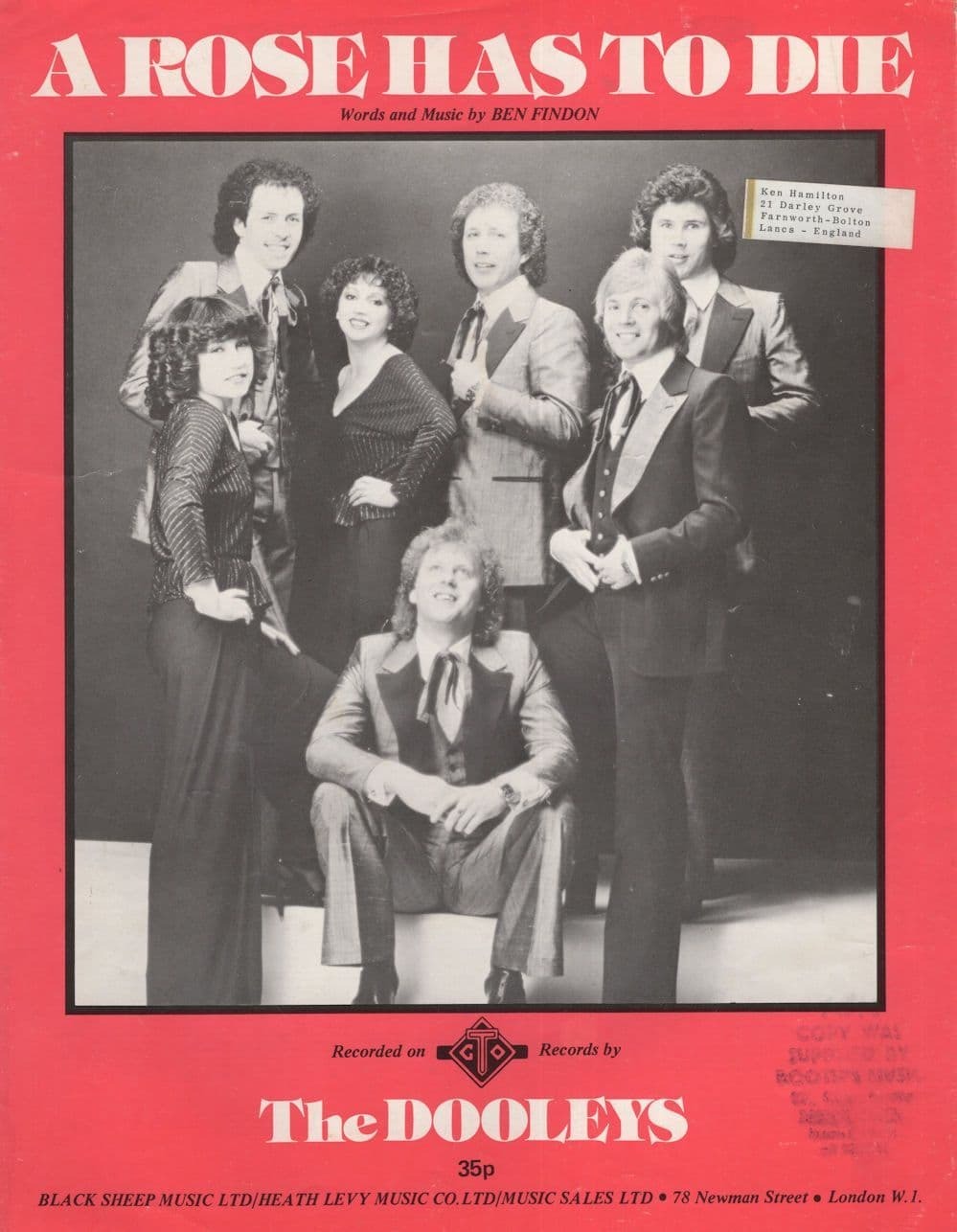 SM** A vintage 1970s score for the Dooleys hit A Rose Has To Die - there is handling to allow but seems light - my grading is good plus to vg minus (even though mostly very good indeed).