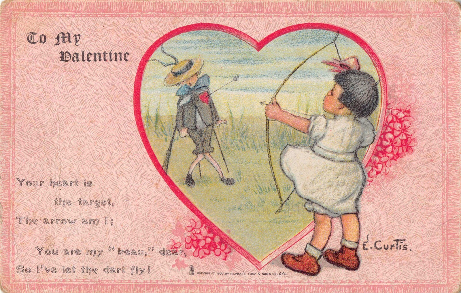 a/s Curtis Girl with bow Vintage valentine postcard 26val06