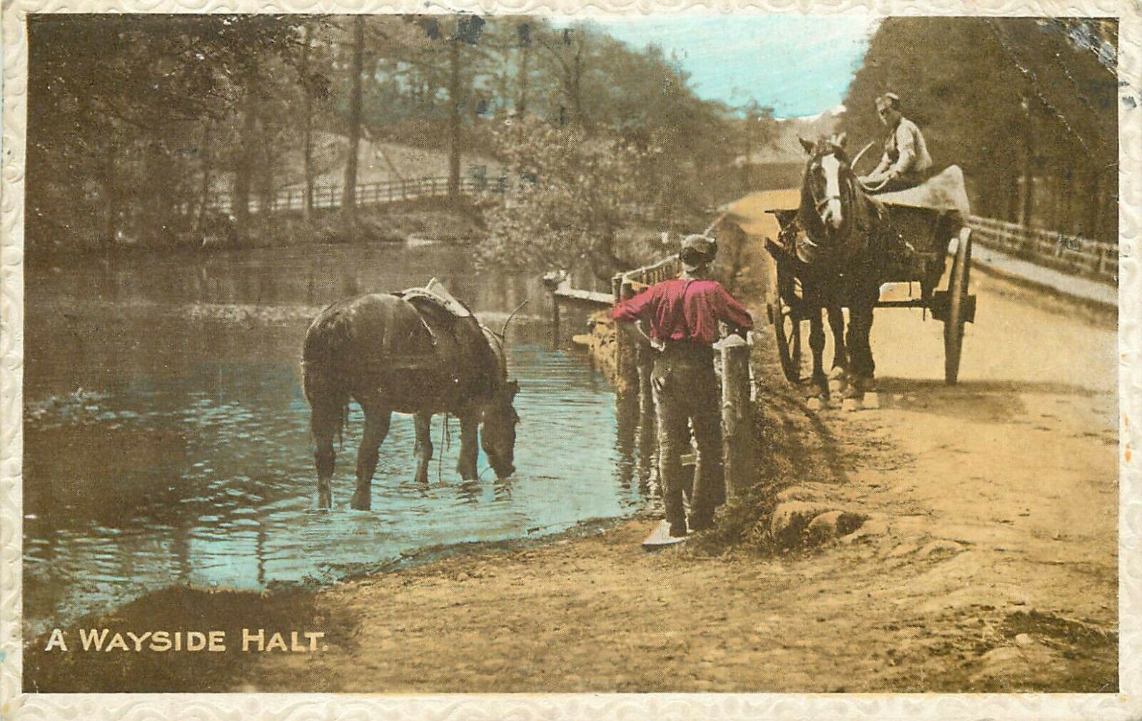 A Wayside halt horses postcard