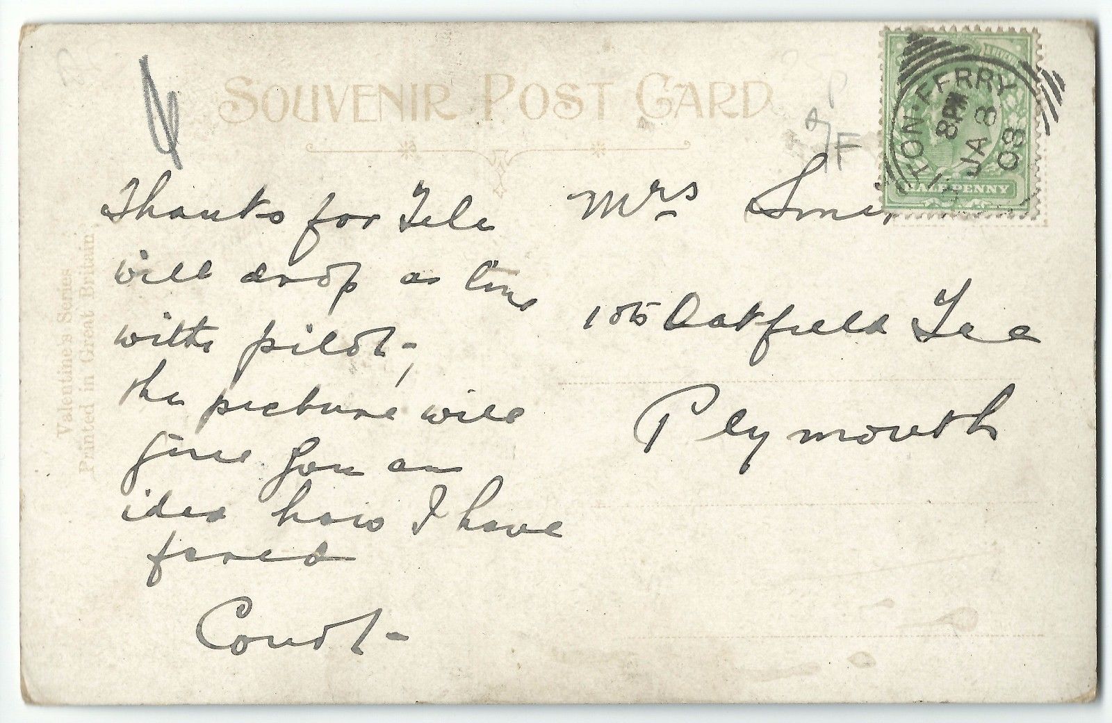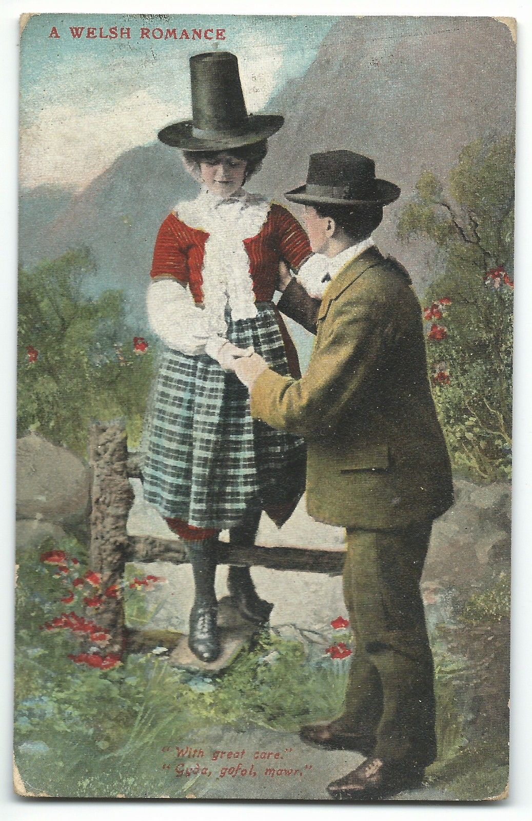 A Welsh Romance, Romantic PPC, 1908 Sutton Ferry Squared Circle PMK to Plymouth