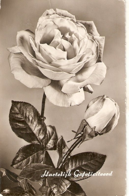 "a white rose" nice old vintage dutch greetings ostcard Publisher: NOT MENTIONED Artist: PHOTO Condition Divided. Written on back and posted 4 cents Nederland stamp affixed Good condition. Tiny corners bumps ... Read More