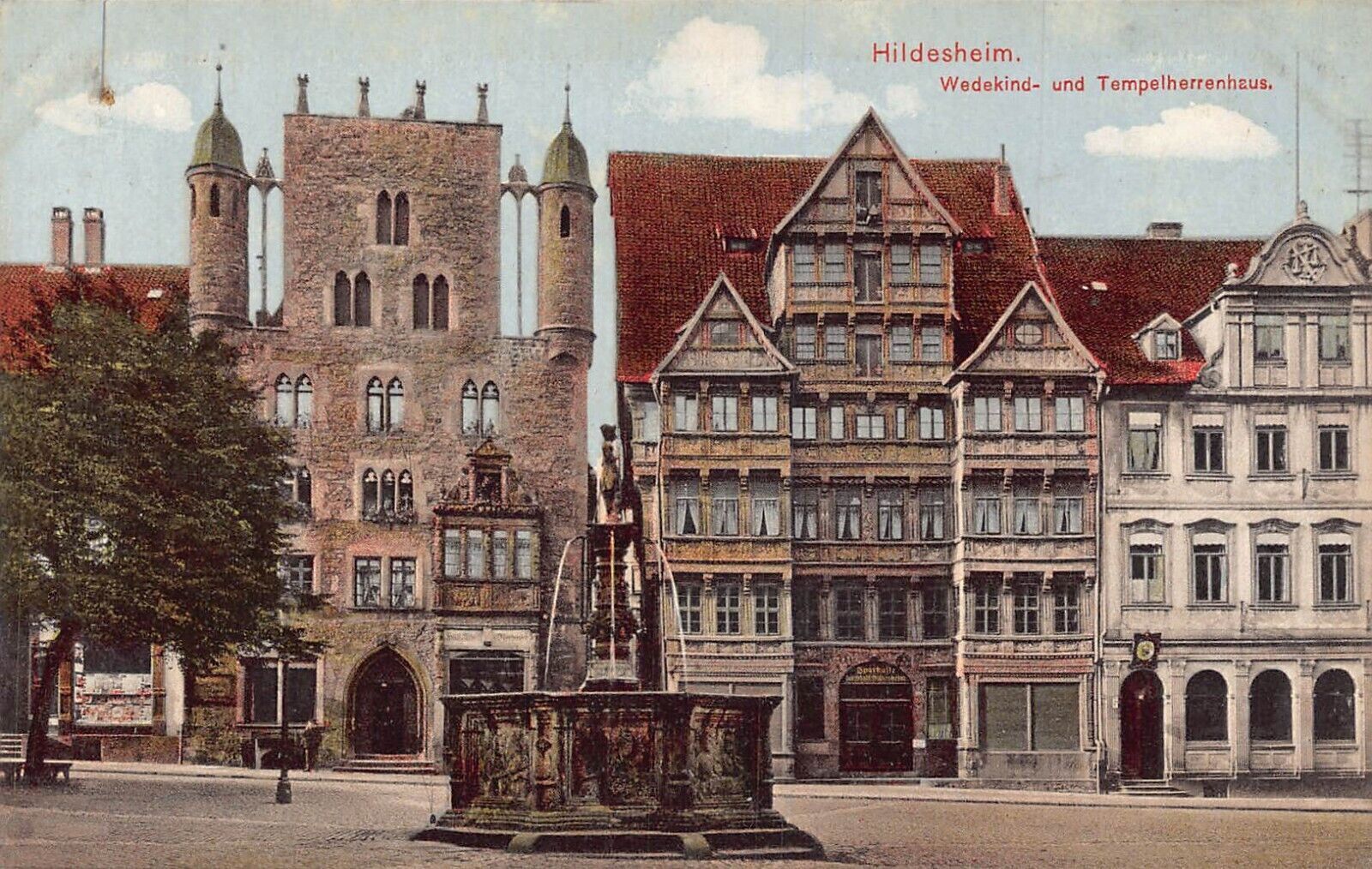 A020 Germany Hildesheim Wedekind und Tempelherrenhaus fountain vintage postcard
