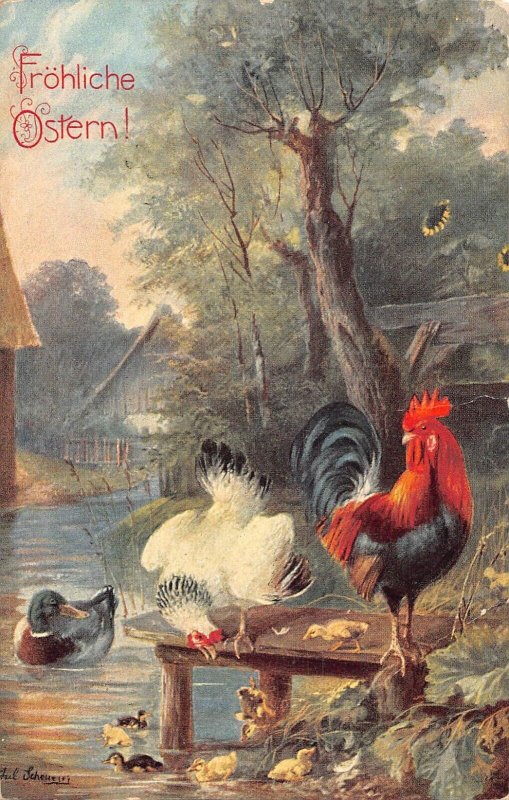 A095 Easter Greetings 1906 Rooster Chicken Ducks Artist Card signed postcard This item is listed via xdm.it software