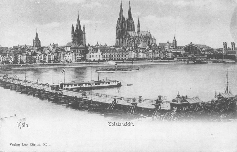 A141 Germany Cologne Koeln Total View Steamboats bridge postcard