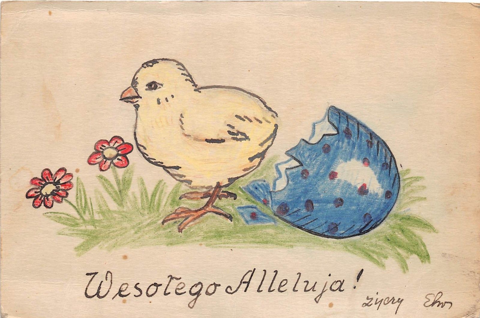 A35/ Easter Postcard Holiday Greetings 1949 Hand Drawn Foreign Chick Eggshell 9