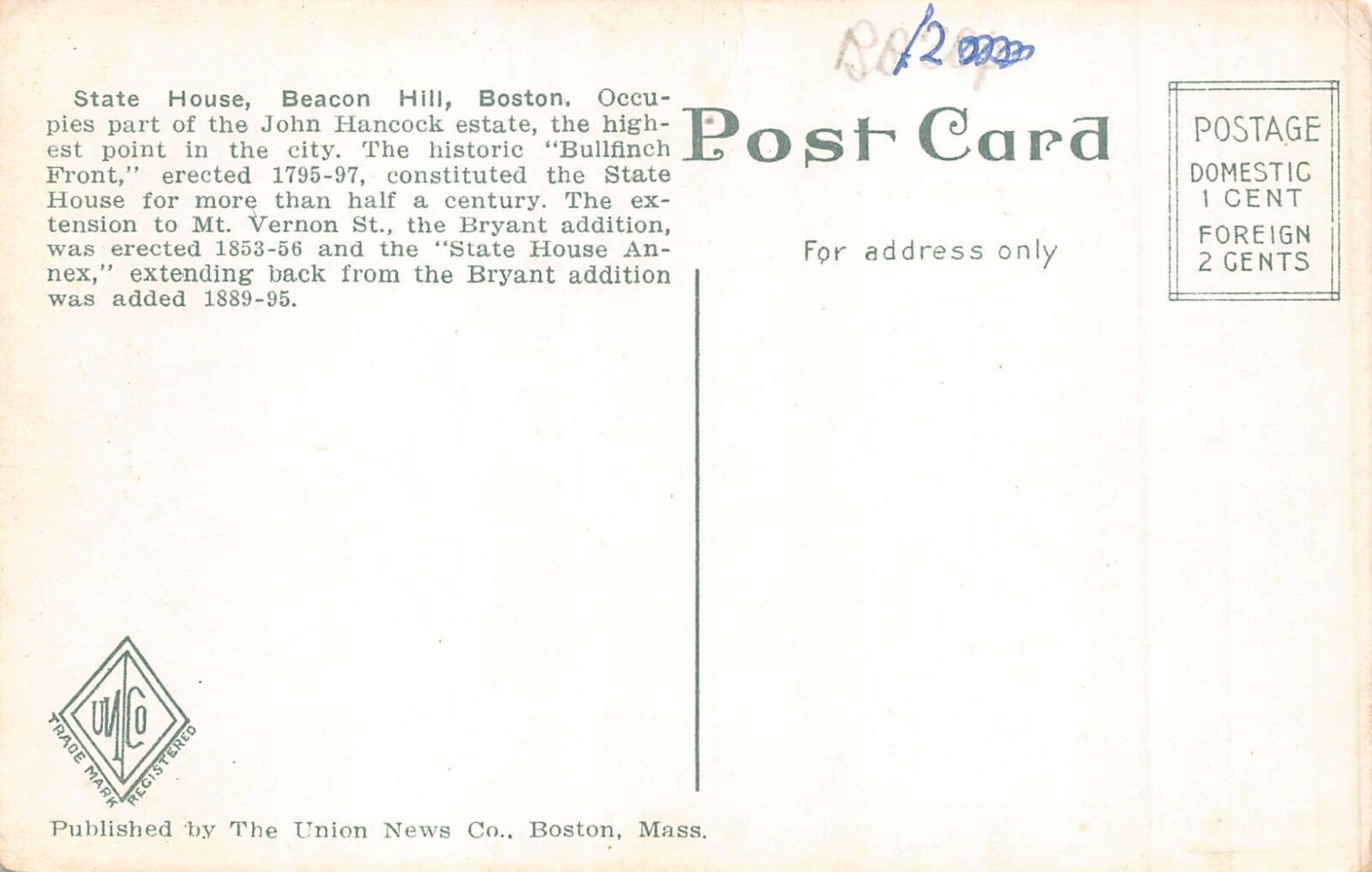 A672 US Massachusetts Boston State House vintage postcard