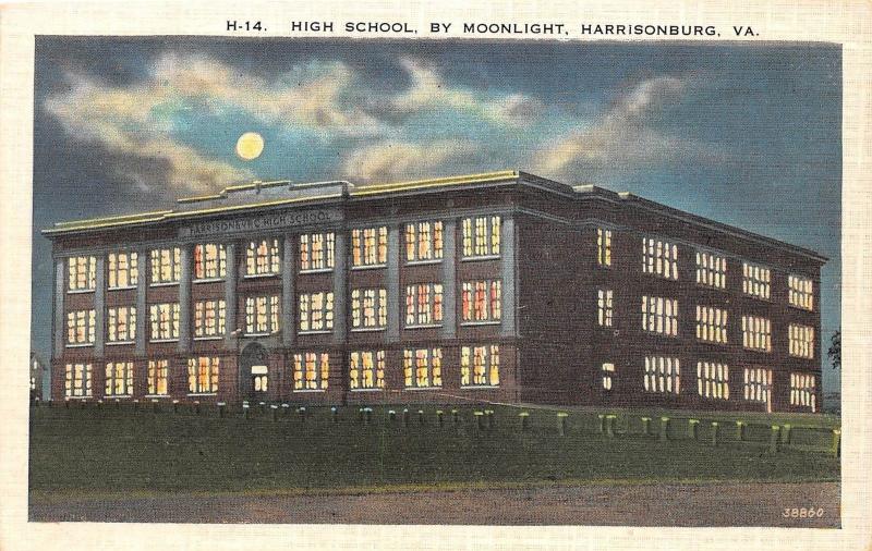 A83/ Harrisonburg Virginia Va Postcard c1910 High School Building Moonlight