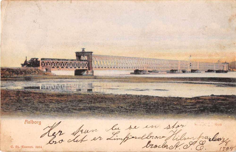Aalborg Denmark Train Bridge Antique Postcard J53898