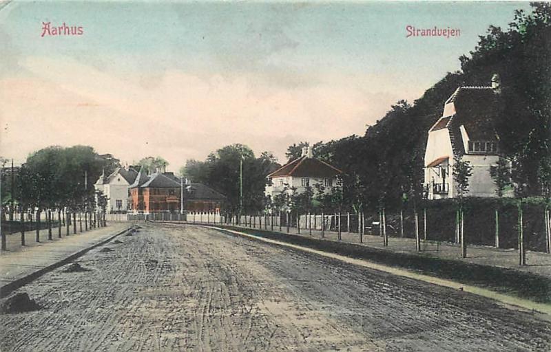 Aarhus, denmark street scene strandvejen handcolored postcard