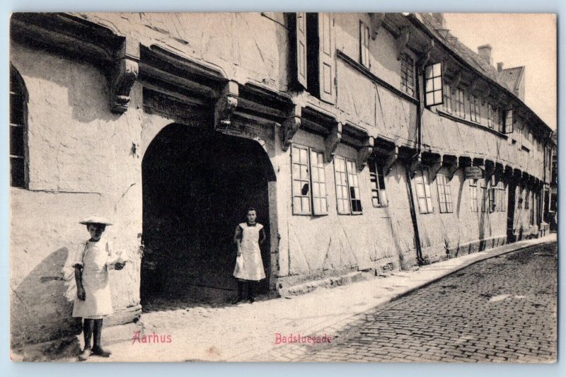 Aarhus Midtjylland Denmark Postcard Badstuegade Building and Road Scene c1930's