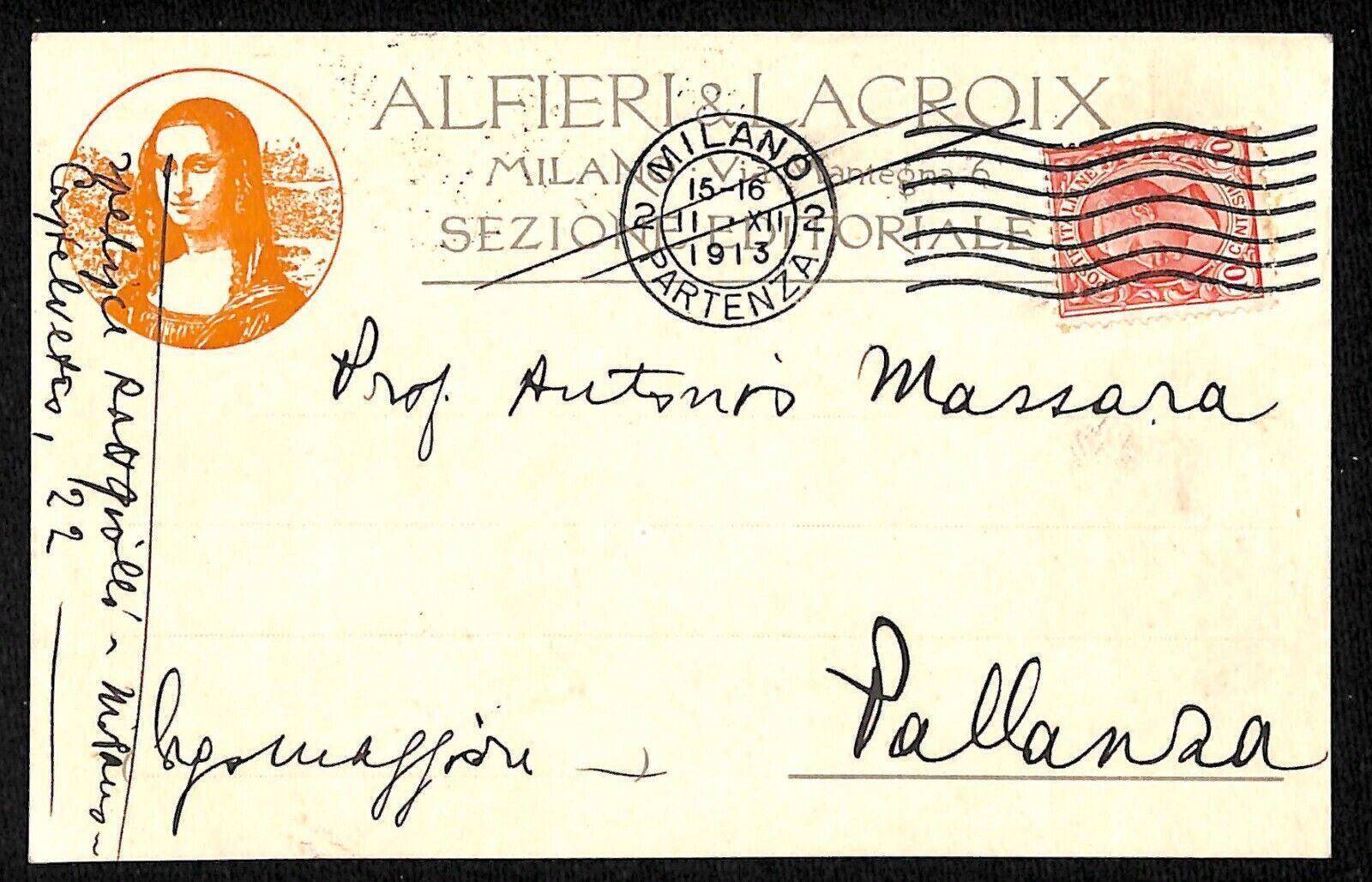 Oggetto: Cartolina d'epoca Comune: MilanoProvincia: Milano Viaggiata : 1913. Retro non diviso. _______________________________________________________________________ SPEDIZIONE UNICA! NESSUN COSTO AGGIUNTIVO PER UN ULTERIORE ACQUISTOMA ASPETTA CHE TI INVIIAMO LA FATTURA COMBINATA!Ordini superiori a 30 Euro - spediti solo con POSTA RACCOMANDATAOrdini superiori a 250 Euro - spediti solo con CORRIERE. Prezzo in base alla località, ma di solitamente: 12 Euro in ITALIA20 Euro in EUROPAErcole Gloria Srl è uno STORICO negozio di francobolli , fondato nel 1926. Siamo a conduzione familiare, affidabili e cerchiamo di essere il più disponibili possibile. Abbiamo uno dei più grandi e variati stock di francobolli, storia postale e cartoline al mondo! Stiamo caricando nuovi articoli ogni giorno! Se stai cercando qualcosa, qualsiasi argomento o paese, faccelo sapere, faremo in modo di farti sapere cos'altro abbiamo!Track Page Views WithAuctiva's FREE Counter
