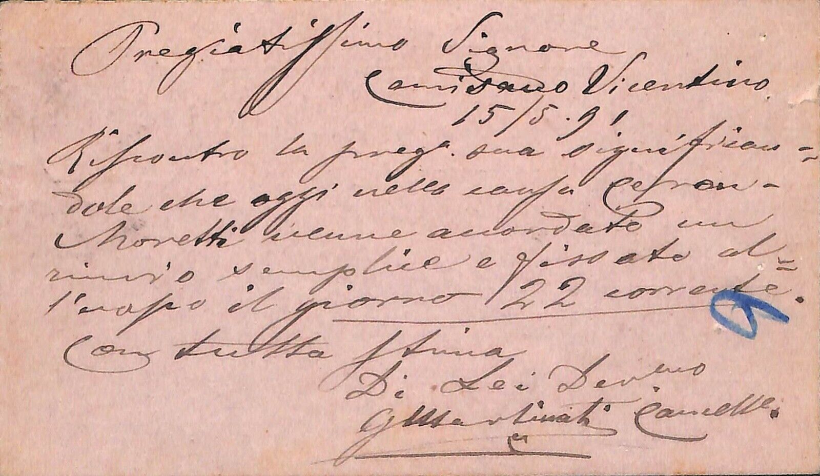 Oggetto: Cartolina d'epoca Comune : VicenzaProvincia : VicenzaViaggiata : Si. 1891 Retro non diviso _______________________________________________________________________________ SPEDIZIONE UNICA! NESSUN COSTO AGGIUNTIVO PER UN ULTERIORE ACQUISTOMA ASPETTA CHE TI INVIIAMO LA FATTURA COMBINATA!Ordini superiori a 30 Euro - spediti solo con POSTA RACCOMANDATAOrdini superiori a 250 Euro - spediti solo con CORRIERE. Prezzo in base alla località, ma di solitamente: 12 Euro in ITALIA20 Euro in EUROPAErcole Gloria Srl è uno STORICO negozio di francobolli , fondato nel 1926. Siamo a conduzione familiare, affidabili e cerchiamo di essere il più disponibili possibile. Abbiamo uno dei più grandi e variati stock di francobolli, storia postale e cartoline al mondo! Stiamo caricando nuovi articoli ogni giorno! Se stai cercando qualcosa, qualsiasi argomento o paese, faccelo sapere, faremo in modo di farti sapere cos'altro abbiamo!Track Page Views WithAuctiva's FREE Counter