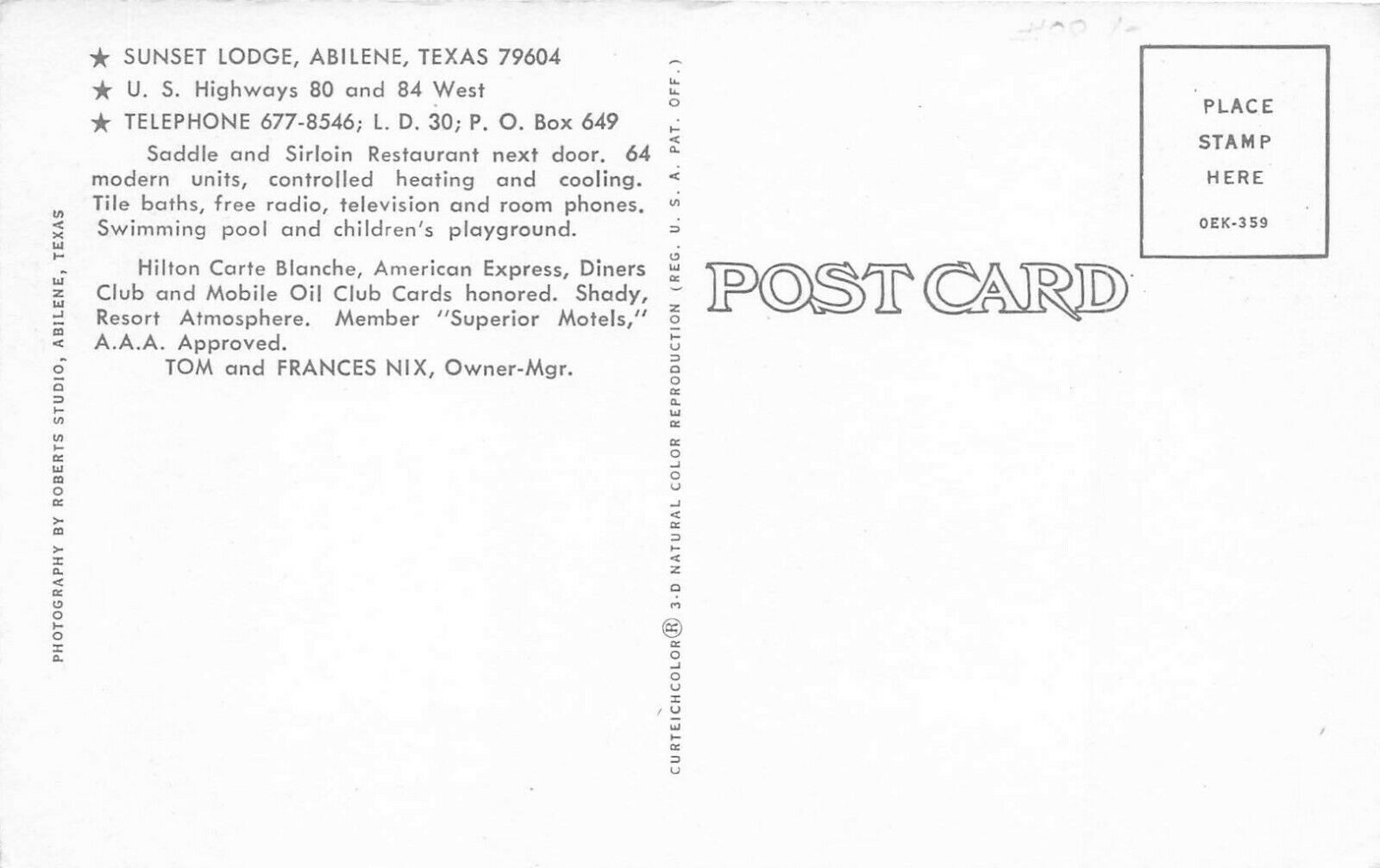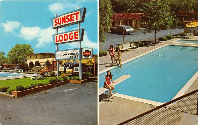 Abilene Texas 1960s Postcard Sunset Lodge Swimming Pool