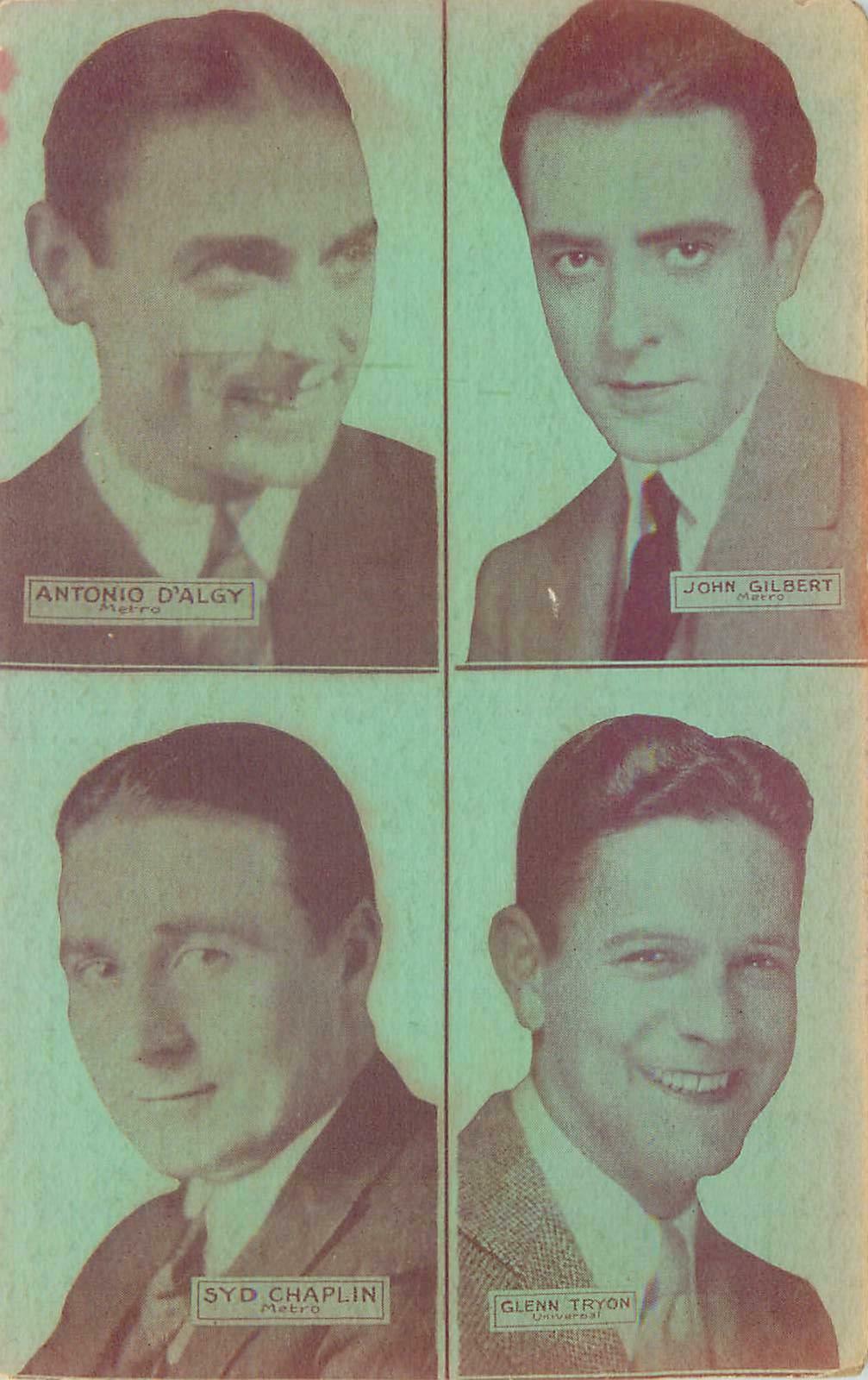 Actors Postcard Syd Chaplin, Glenn Tryon, John Gilbert, Antonio D'Algy
