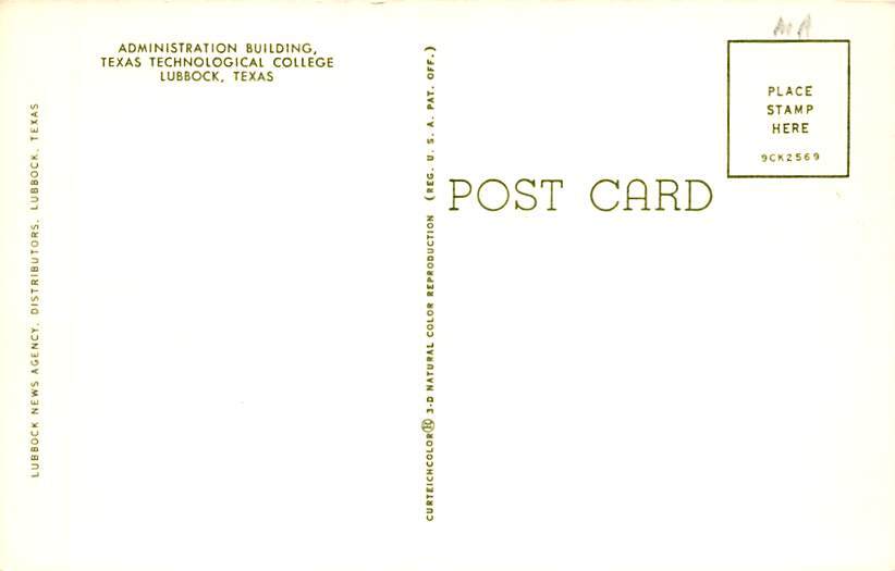 Administration Building Texas Technological College - Lubbock, Texas TX Postcard