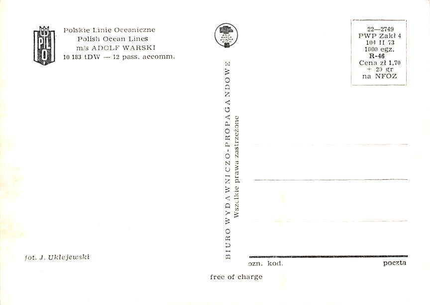Adolf Warski Adolf Warski , Polish Ocean Lines Postcard View image, Grade: 1, , Size: Continental Size Postcard - approximately 4 inch X 6 inch (15 CM X 10.5 CM) Grading Scale: Grade 1 = Perfect corners Grade 2 ... Read More