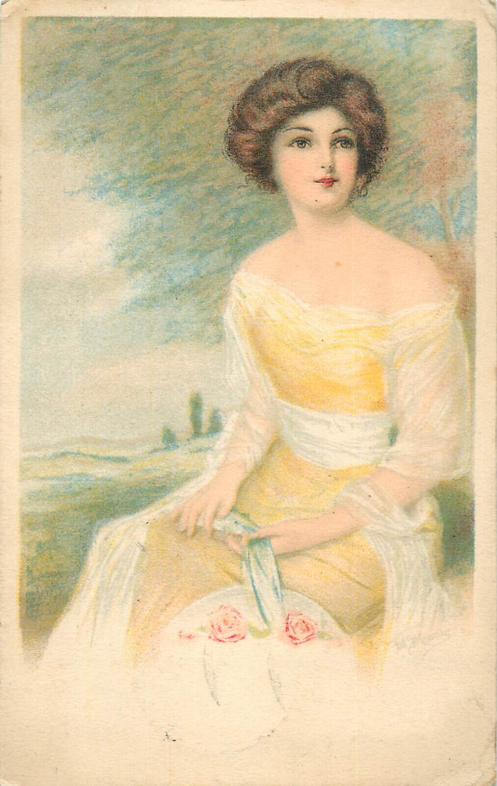 Adorable drawn lady portrait 1914 Budapest Hungary