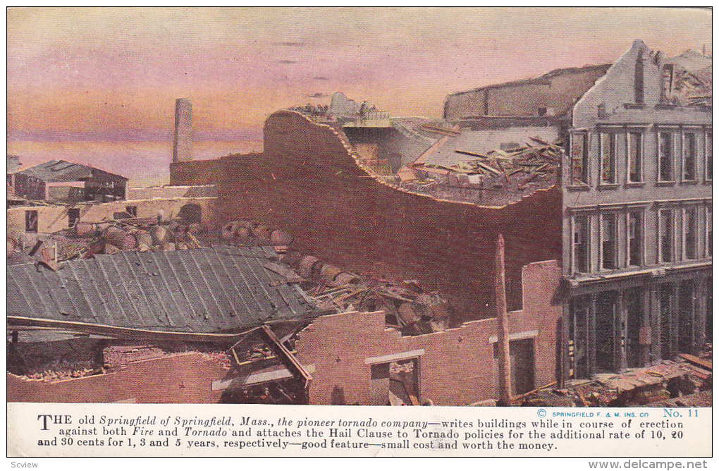ADV: Tornado Insurance , "OLD SPRINGFIELD" Insurance , Springfield , Massachusetts , PU-1912 :: Postcard , 3.5 by 5.5" , Litho , EX
