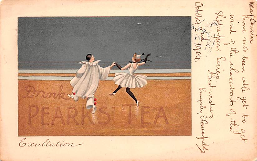 Drink Pearks Tea Dancing Postcard adv014003: Advertising Post Card Year Date of Postcard, or Postal Used / Year Used: 1904 Grade: 3 Size: R Grading Scale: Grade 1 = Perfect corners Grade 2 = Very Minimal cor ... Read More