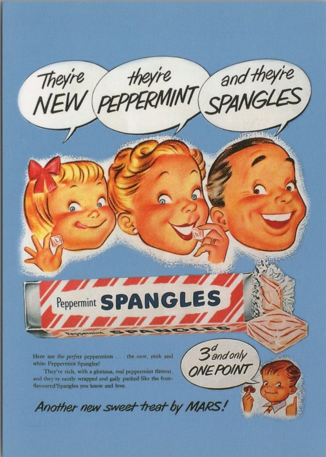 Advertising Postcard-Robert Opie Peppermint Spangles, Childrens Sweets RR16715