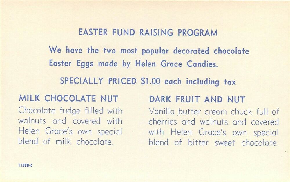 Advertising Postcard,Easter Fund Raising Program,Milk Chocolate,Dark Fruit & Nut