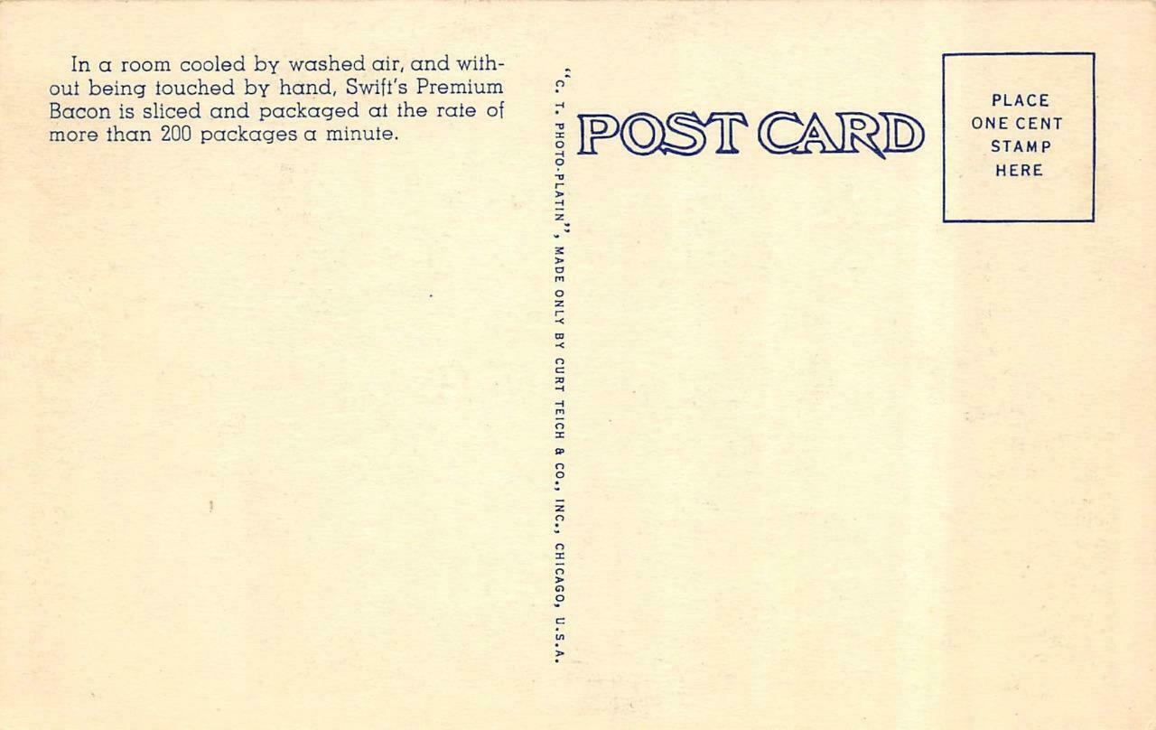 Advertising women at tables packaging swift premium bacon c1940's postcard