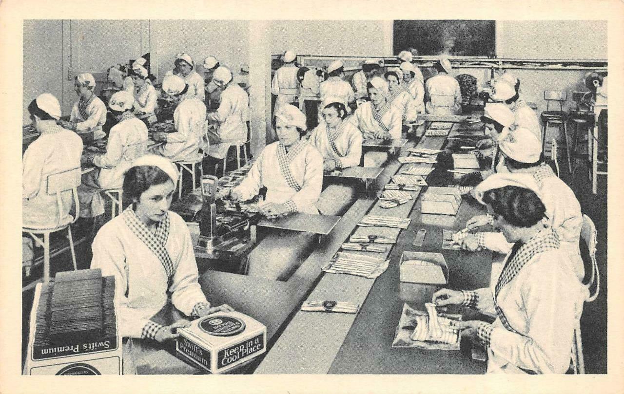 Advertising WOMEN At Tables Packaging SWIFT PREMIUM BACON c1940's Postcard