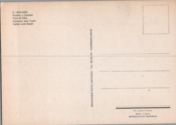 Aerial View Malaga Spain Harbor & Town Continental Postcard