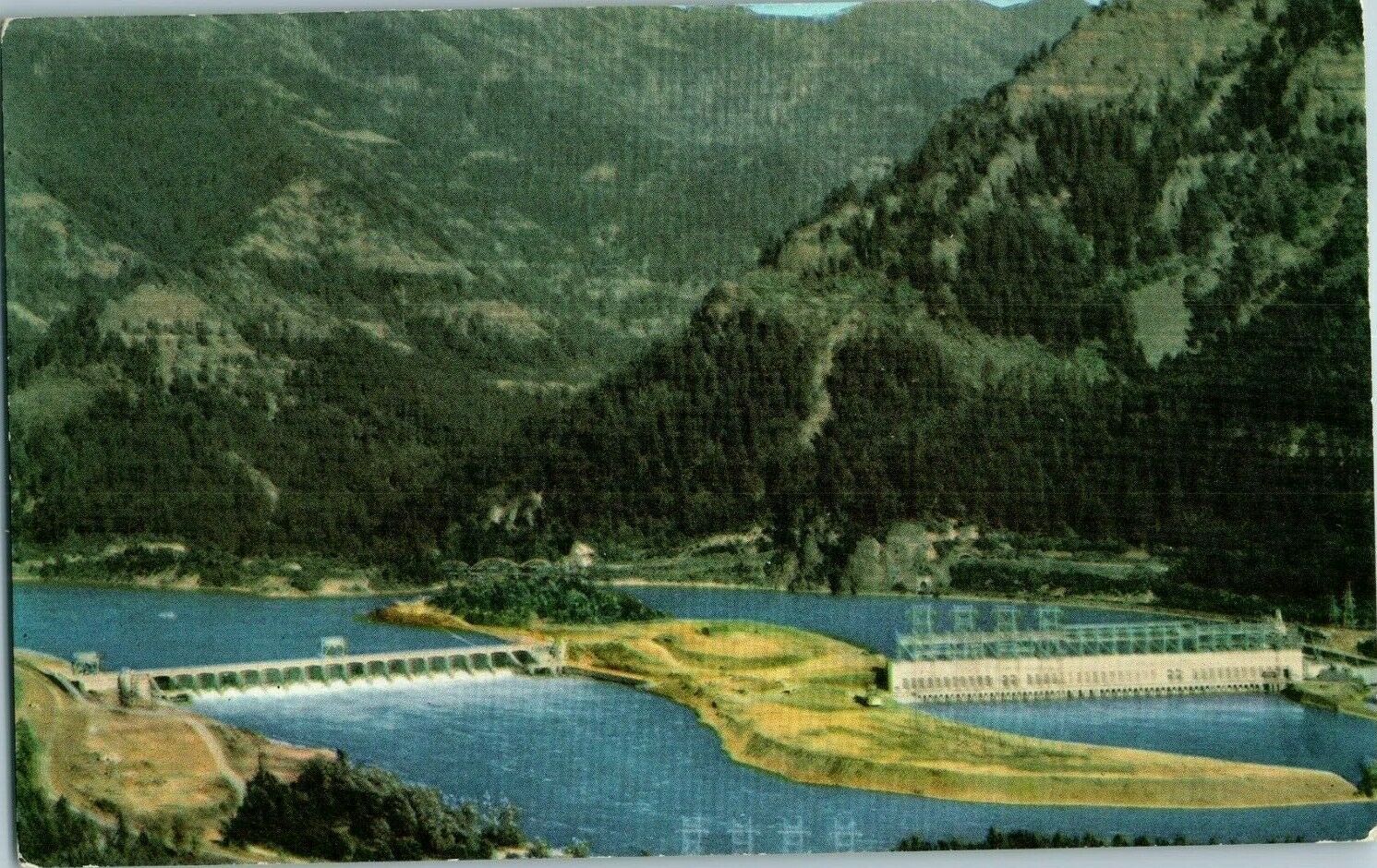Aerial View Postcard Bonneville Dam Cascade Locks Oregon Union Oil Postcard series