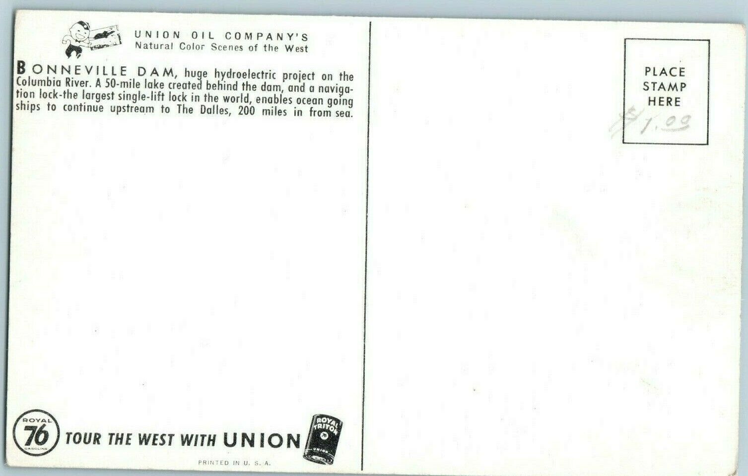 Condition: Pre-owned. May have mild edgewear, typical. Stored well. Some discoloration on the back, typical. Aerial View Postcard Bonneville Dam Cascade Locks Oregon Union Oil Postcard series