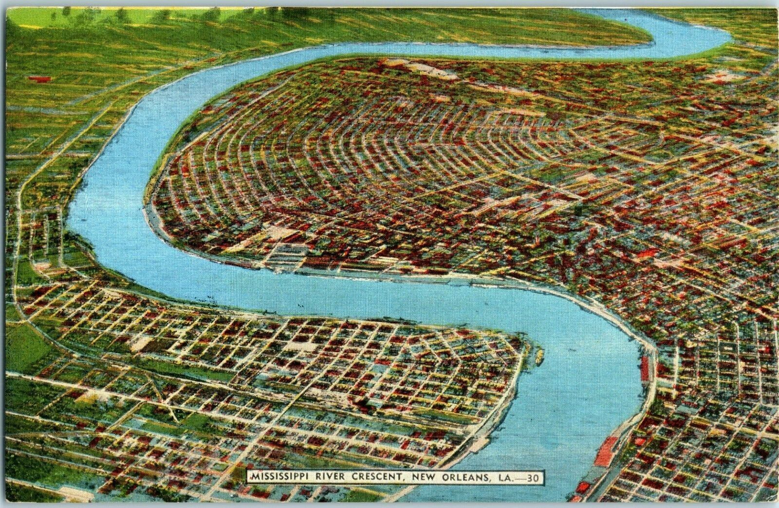 Aerial View Postcard Mississippi River Crescent New Orleans Louisiana