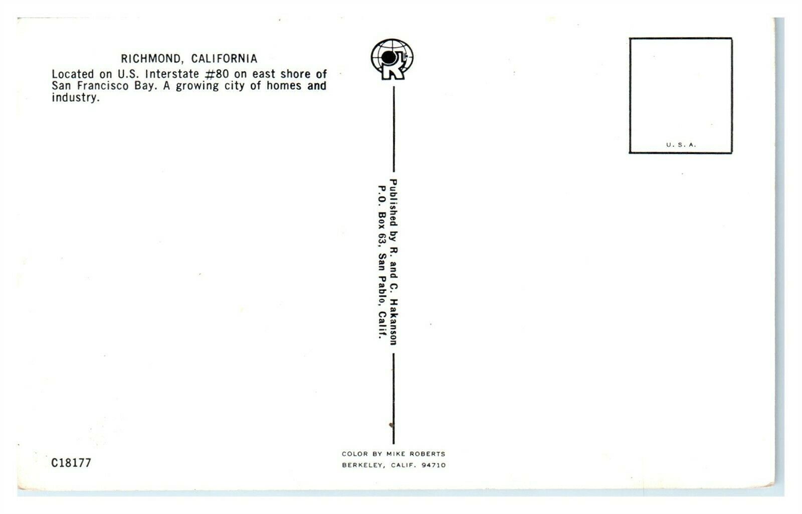 I have for sale one Aerial View, Richmond, CA Postcard *6V(3)12. Consider using the Hip Photo Magnifier (the zoom feature) to examine both photos- front and back, for condition and details. At times, the back phot ... Read More