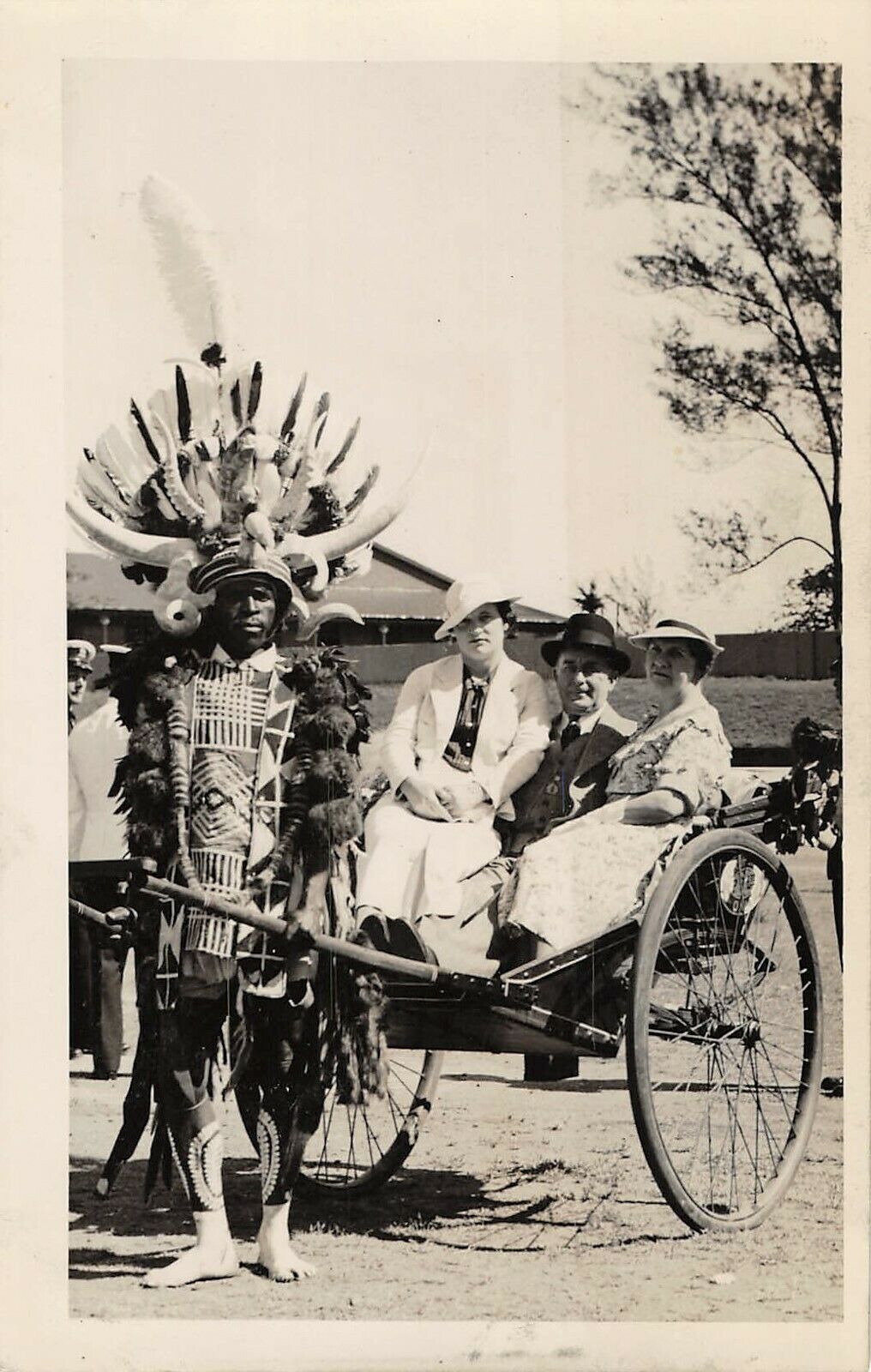 African warrior pulling tourist cart c1940 RPPC aj 228