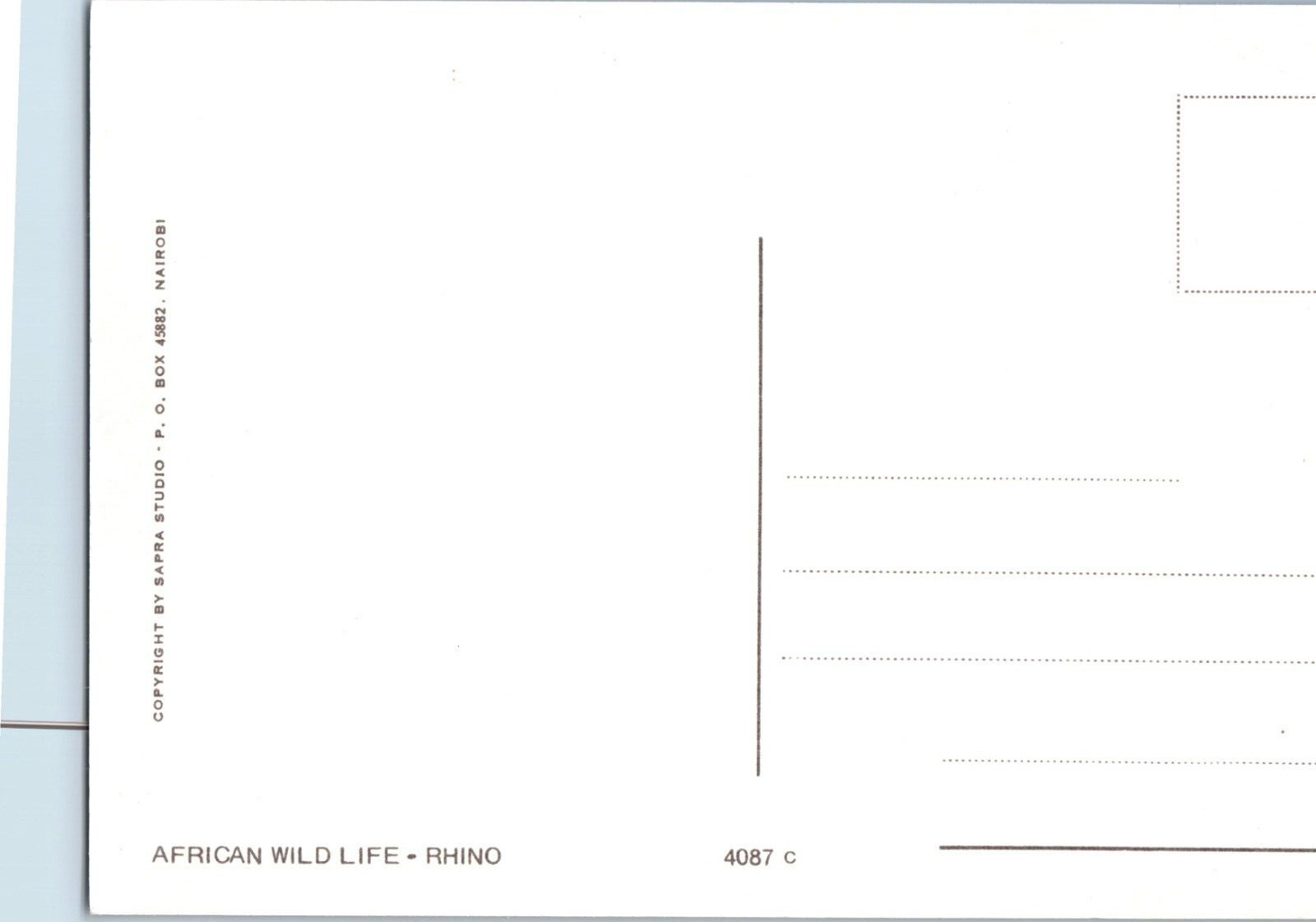 African Wild Life Rhino Postcard