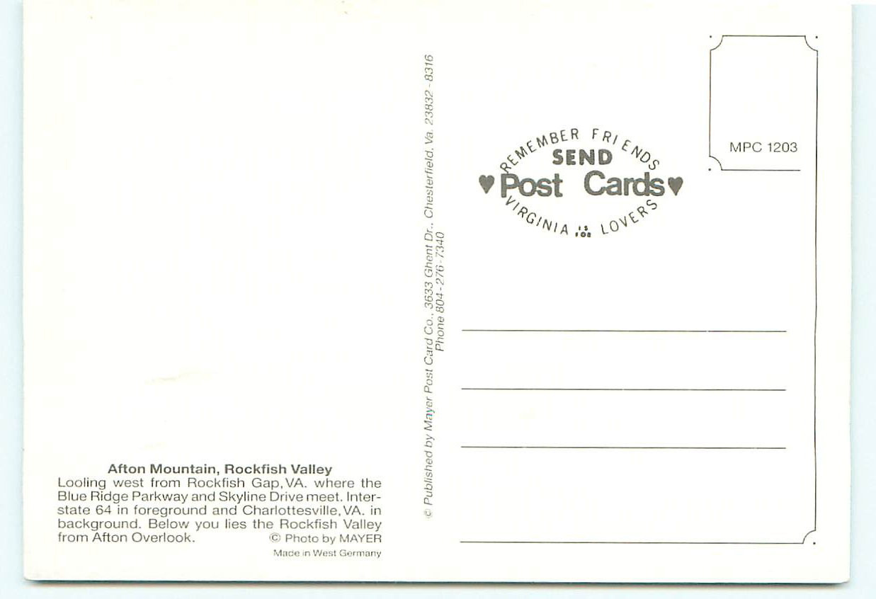 Afton Mountain Rockfish Valley Charlottesville Virginia Afton Mountain Rockfish Valley Charlottesville Virginia * Virginia’s main passage across the Blue Ridge * hikers on the Appalachian Trail * view is of t ... Read More