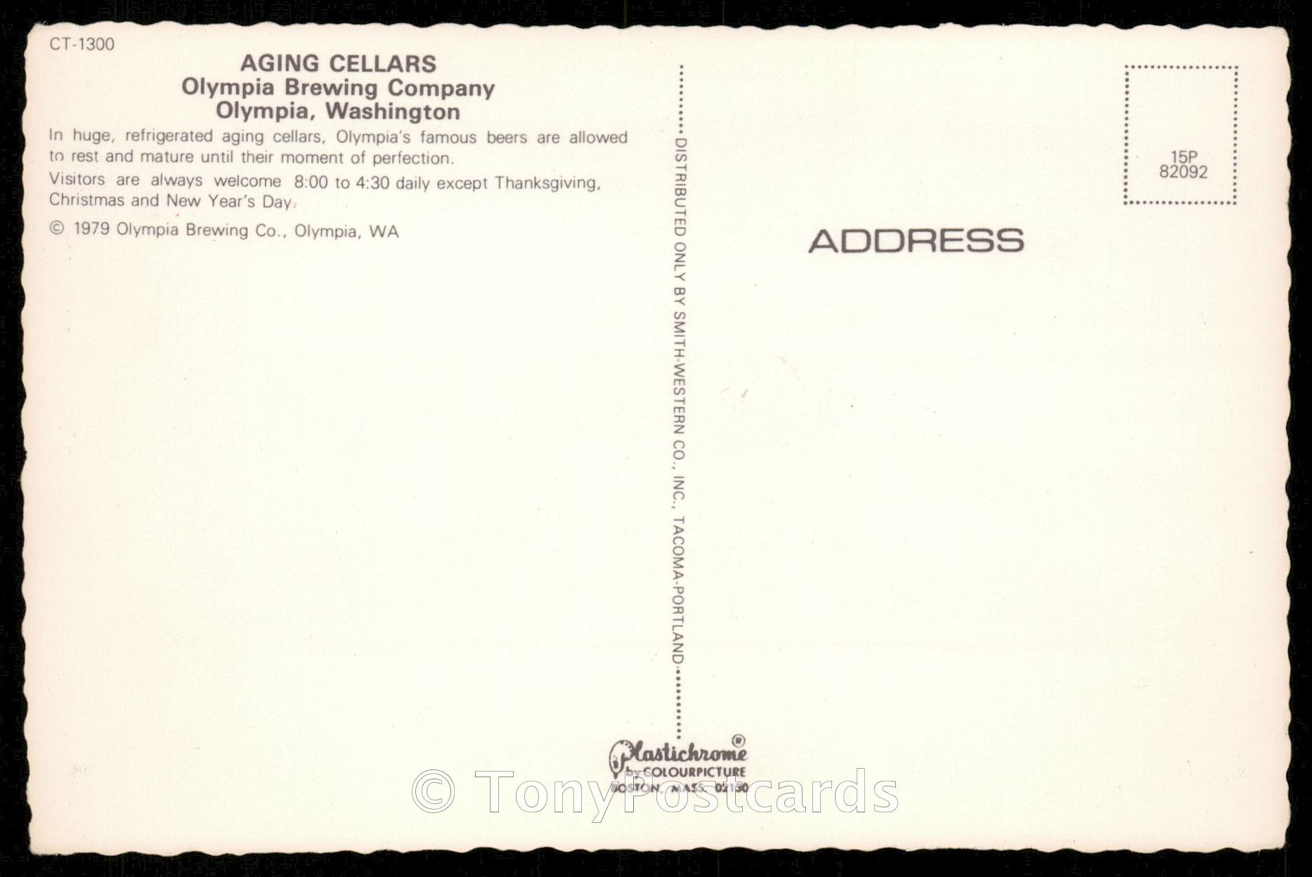 Title: AGING CELLARS - OLYMPIA BREWING COMPANY Condition: See scans Year: 1979 Publisher: Colourpicture Keywords: Plastichrome Olympia, Washington Related Categories: America > United States > WA - Washingto ... Read More