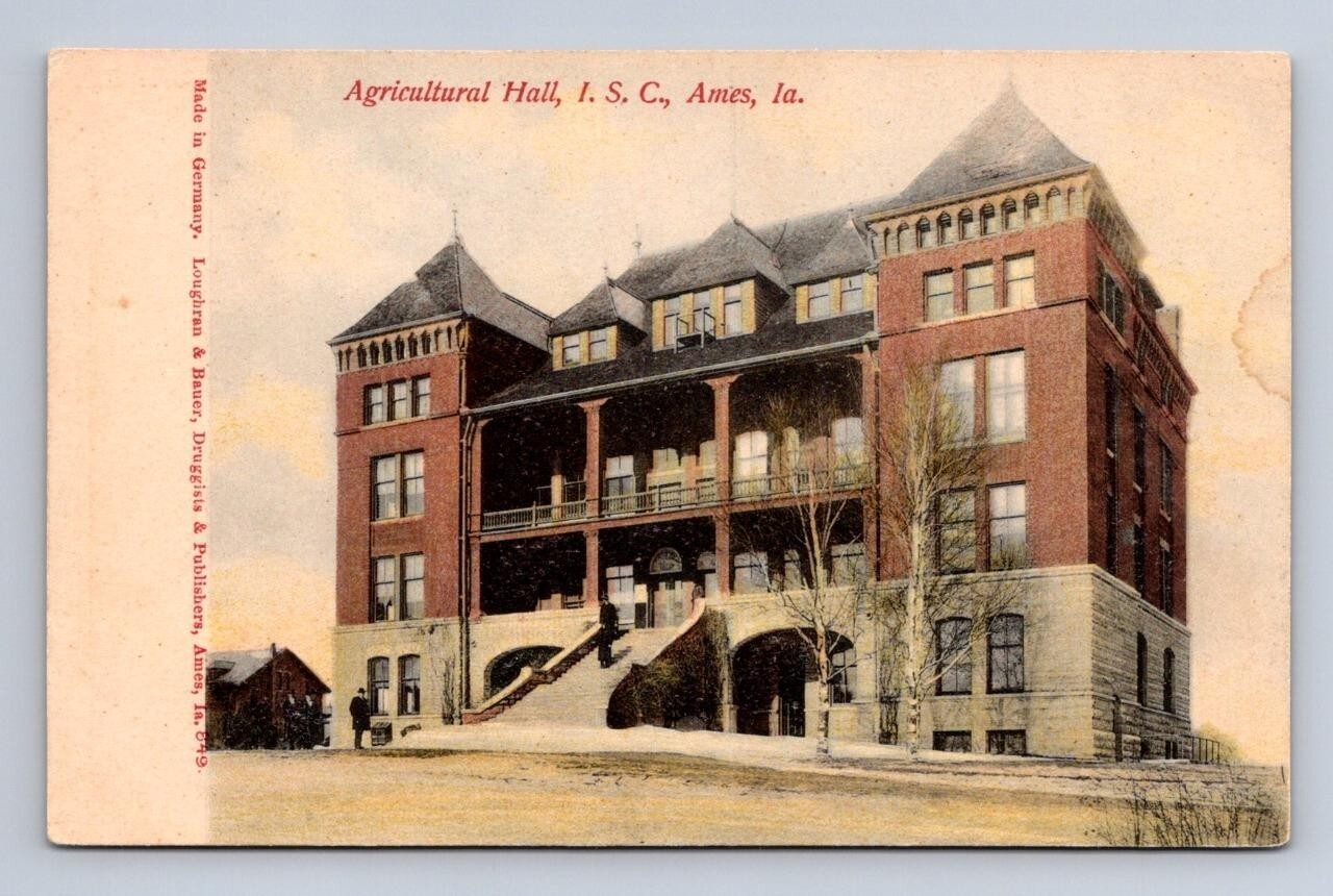 AGRICULTURAL HALL I. S .C COLLEGE AMES IOWA POSTCARD (1908)