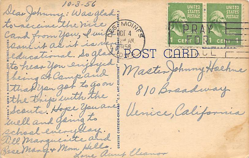 Air View Des Moines Des Moines, Iowa Postcard - 1958 Grade: 4 Size: R - Regular size: Approx 3 1/2 X 5 1/2 inch (9 cm X 14 cm) Grading Scale: Grade 1 = Perfect corners Grade 2 = Very Minimal corner wear, no cr ... Read More