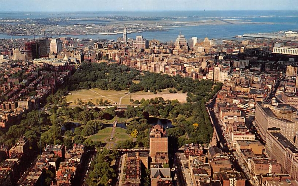 Air View of Boston in Boston, Massachusetts vintage postcard from our collection of over 2 Million old antique post cards of US States, Cities and Town Views. showing The Common, Public Gardens, & many Popular Landmarks.