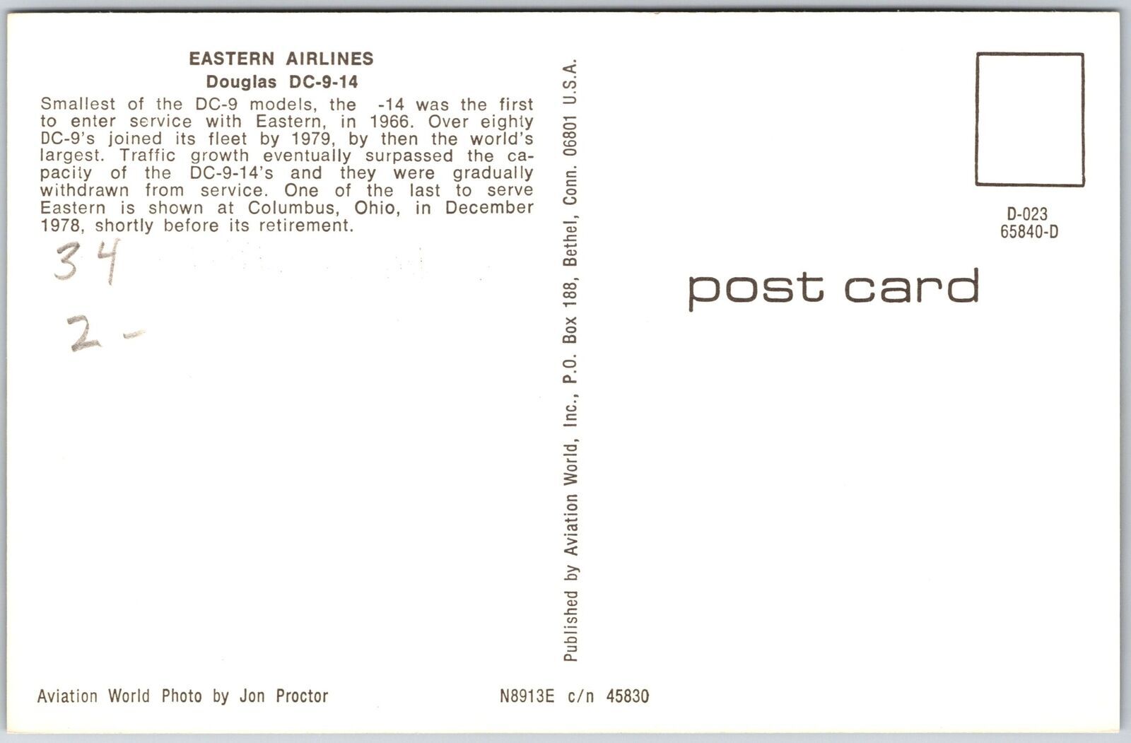 Airplane Eastern Airlines Douglas DC-9-14 Smallest DC-9 Models N8913E Postcard
