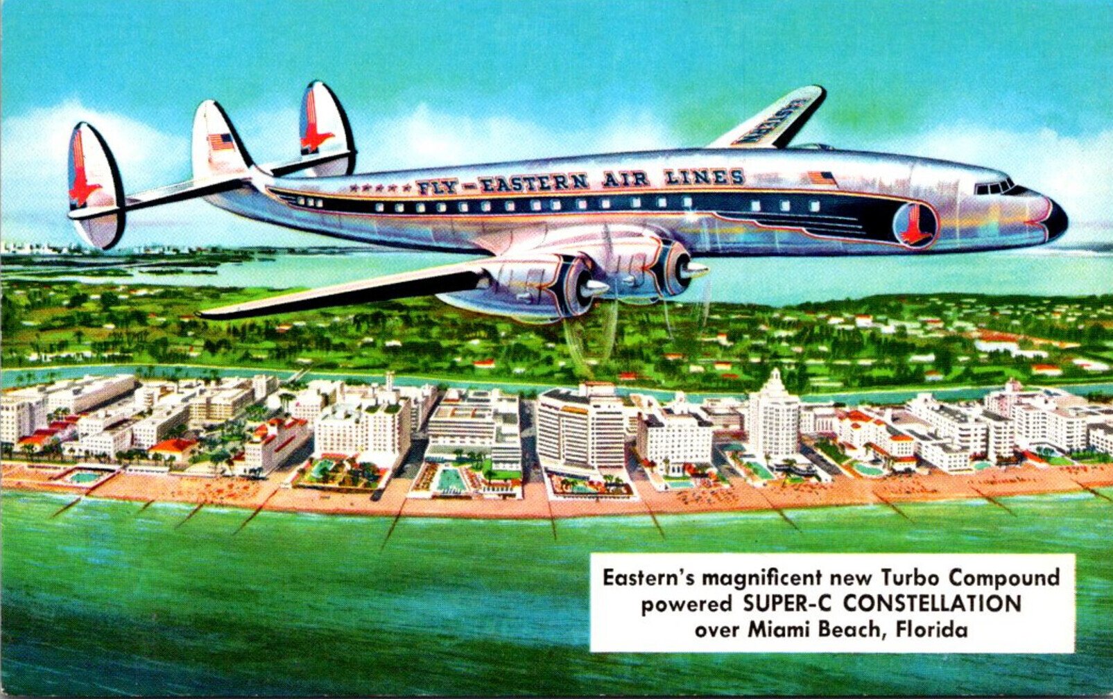 Airplanes Eastern Air Lines Super-C Constellation Over Miami Beach Florida