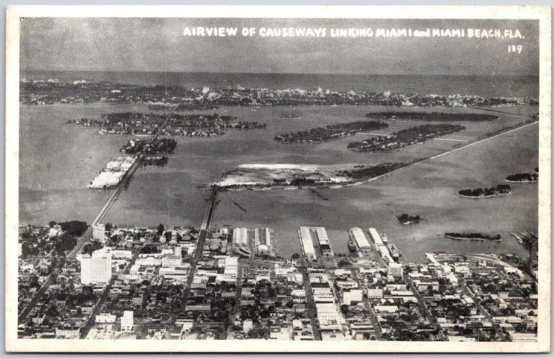 Airview Causeway Linking Miami and Miami Beach Florida FL Postcard