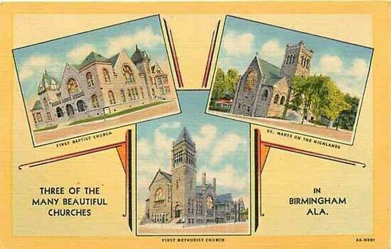 Birmingham, Alabama, Churches, Multi View Linen Postcard.
