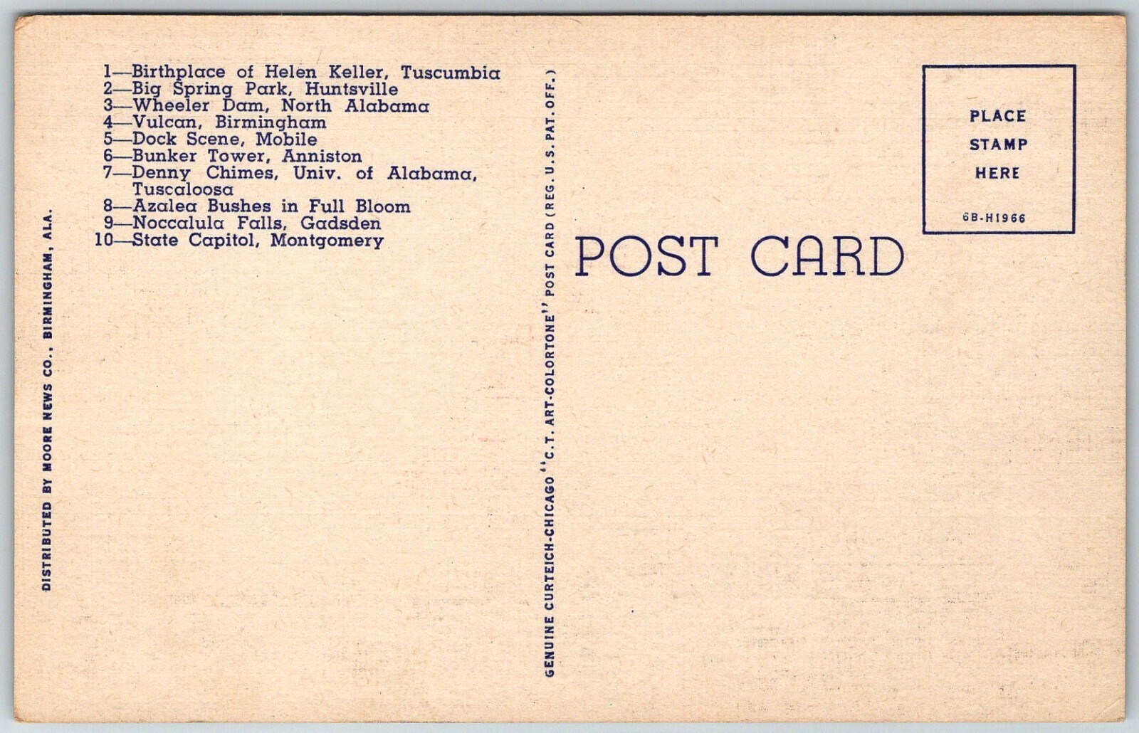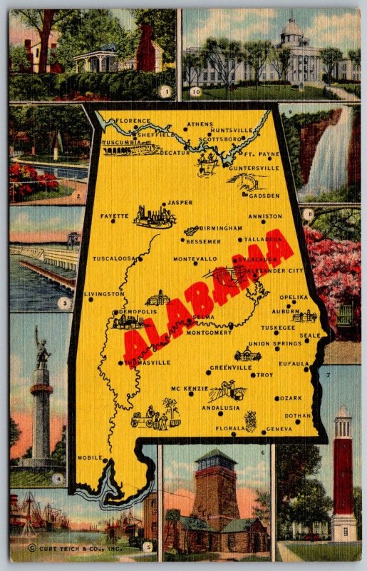 ALABAMA 1940s Linen Map Curt Teich Postcard