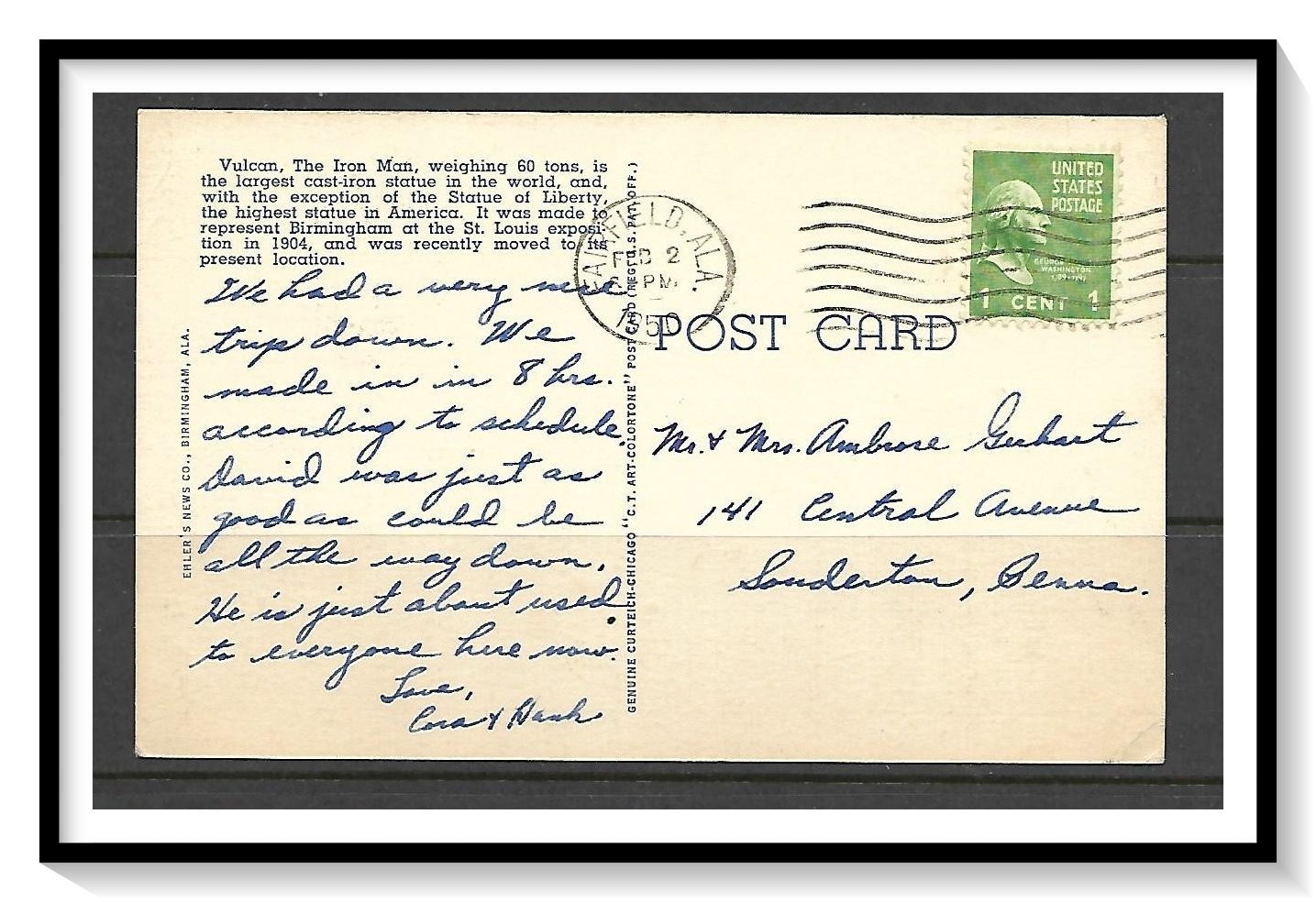 Addressed - Feb 2, 1950 - Curteich - Standard SizeSeller Information
